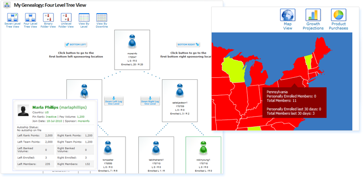 You set up the defaults for your members. Once they sign in to their virtual office they can select colors and rules to best view their sales and downline activity.